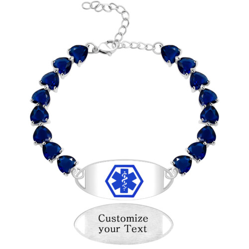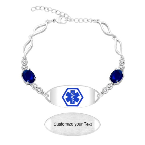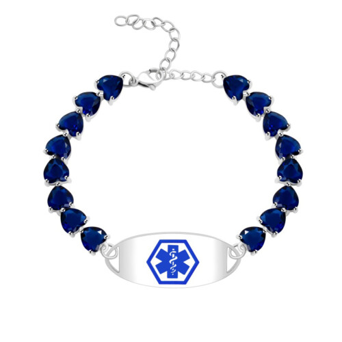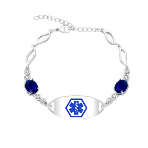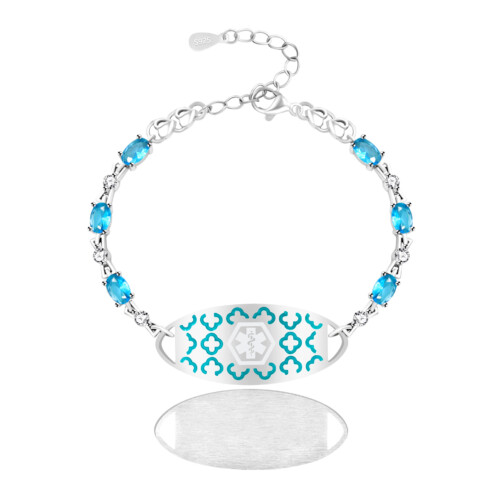 Brass Chains Blue Zircon Medical ID Bracelets for Women- IDB25124SBL