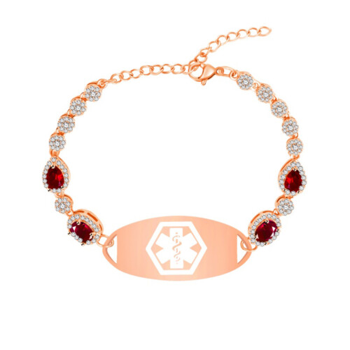 Passion Ruby Stones Rose-gold Allergy ID Bracelet- IDB25118RGR