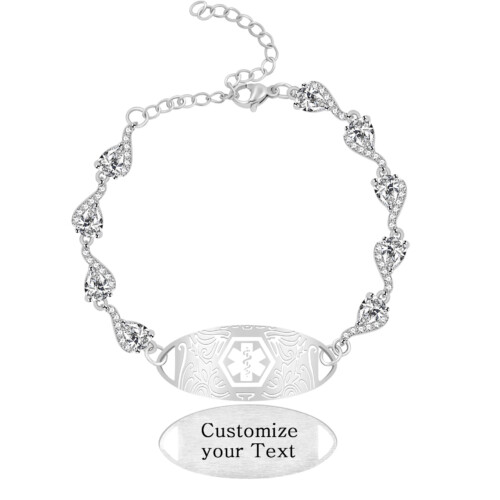 Luxury Shiny Zircon Medical ID Jewelry Bracelets- IDB25121S