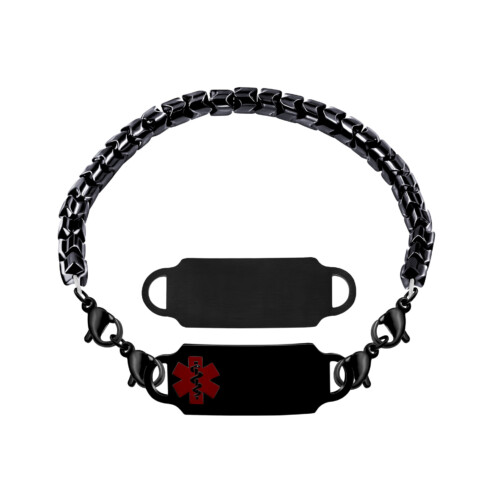 5mm Black Hematite Beads Adjustable Medical ID Bracelets -IDB25125B