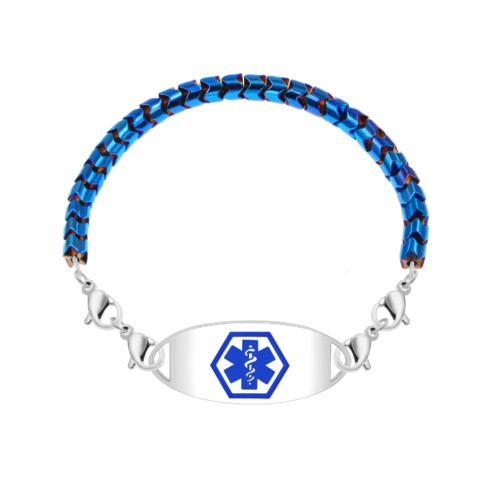 5mm Blue Hematite Beads Adjustable Medical ID Bracelets -IDB25125BLS