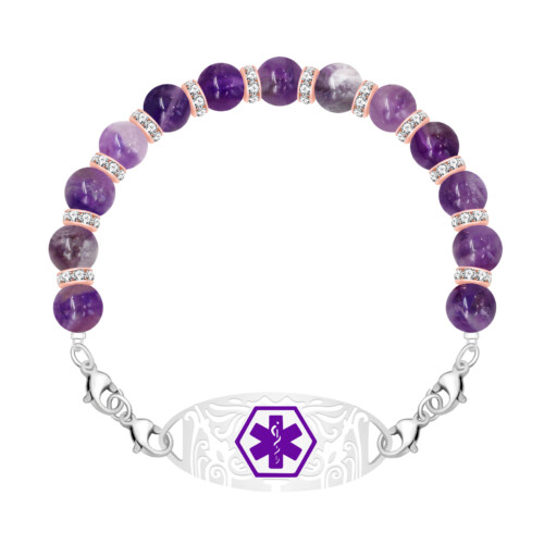 • Women’s Mysterious Amethyst Beads Coumadin ID Bracelets- IDB26028PRS