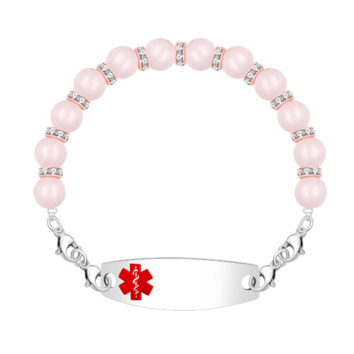 • 8mm Women’s Sweet Rose Quartz Beads Coumadin ID Bracelets- IDB26028PS