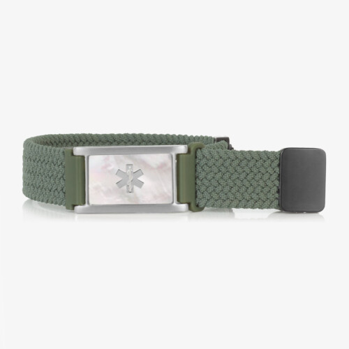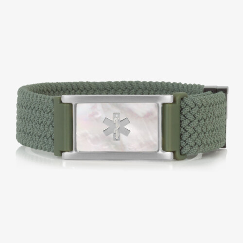 • Sports Green Braid Magnetic Medical ID Bracelets with Mother of Pearl- IDB26029GRS
