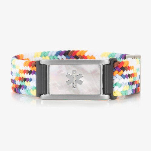 • Sports Rainbow Nylon Braid Magnetic Eliquis ID Bracelets with Mother of Pearl- IDB26029RAS