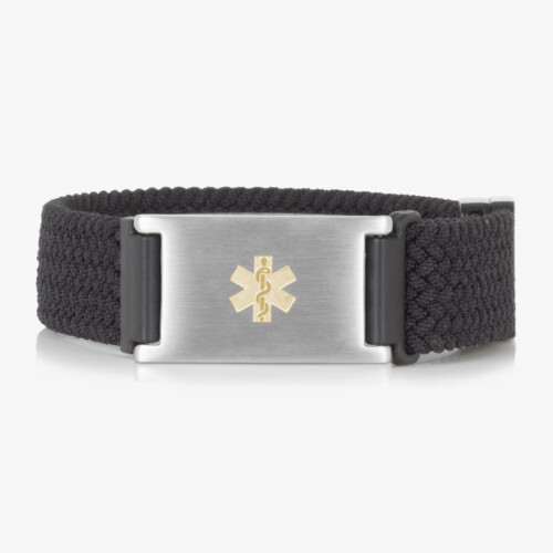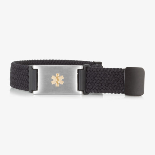 • Sports Black Nylon Braid Magnetic Eliquis ID Bracelets- IDB26030BS