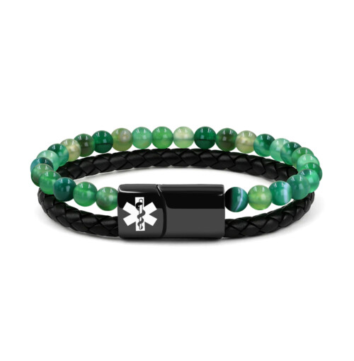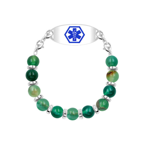 Vitality Green Agate and Hematite Beads Emergency ID Bracelets- IDB26018GRS