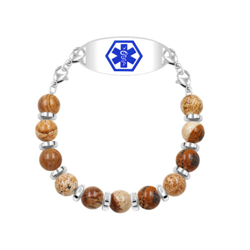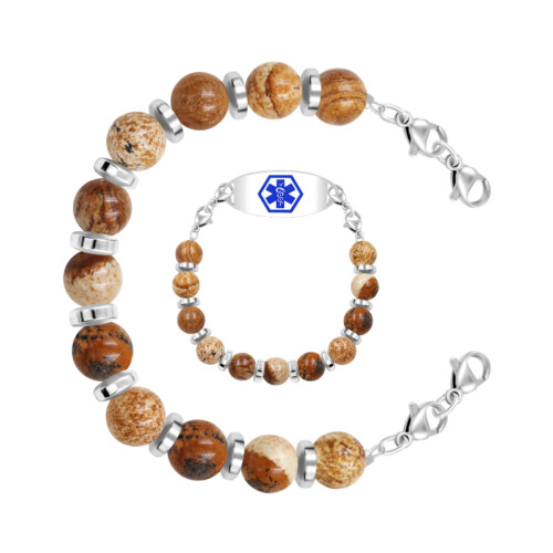 Picture Jasper and Hematite Beads Emergency ID Bracelets- IDB26018PICS