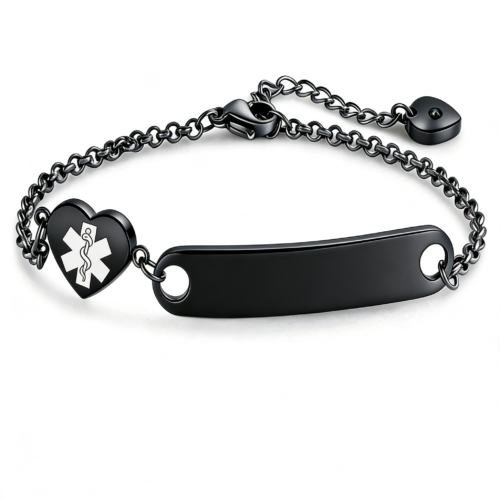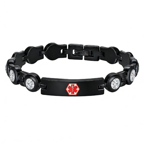 Onyx Black Type II ID Bracelets With Shiny CZ Stones -IDB26061B