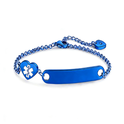Blue Pearl Chain Sweet Heart Design Emergency ID Bracelets -IDB26060BL