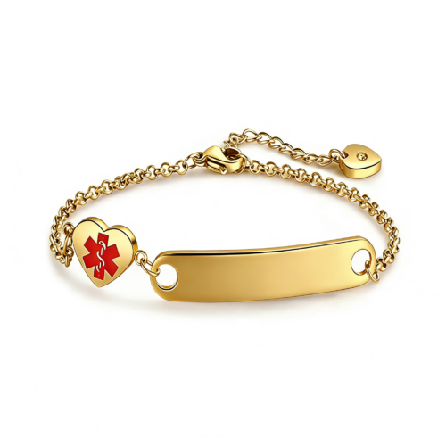 Golden Pearl Chain Sweet Heart Design Blood Thinner ID Bracelets -IDB26060G
