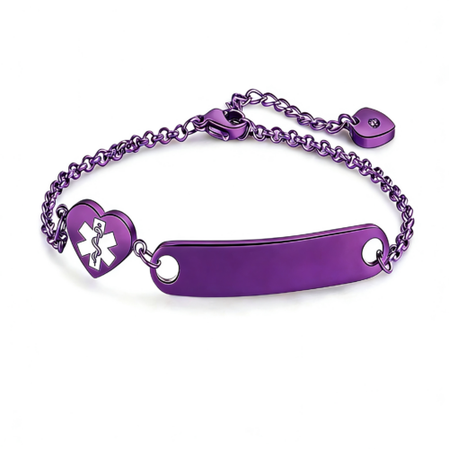 Silent Purple Sweet Heart Design Blood Thinner ID Bracelets -IDB26060PR