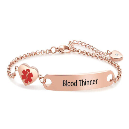 Sweet Heart Design Blood Thinner ID Bracelets with Stainless Steel Pearl Chains -IDB26060RG