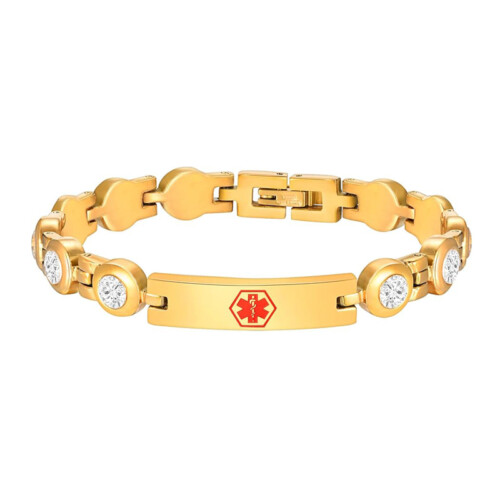 Golden Coumadir ID Bracelets With Shiny CZ Stones -IDB26061G