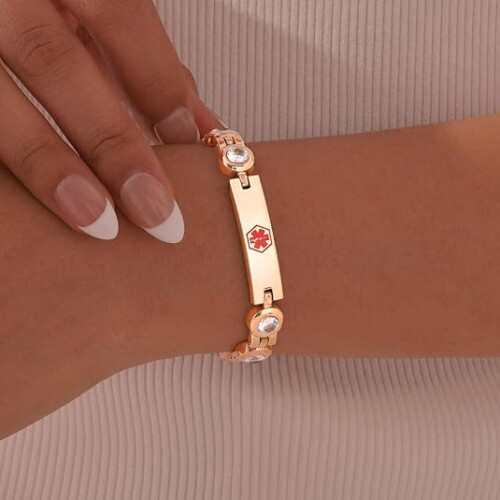 Rose-gold Coumadir ID Bracelets With Shiny CZ Stones -IDB26061RG
