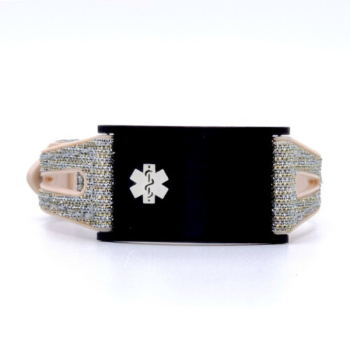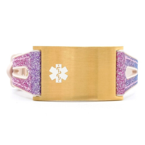 Noble Gold Glittery Medical ID Jewelry Wristband Chameleon Waterdrop Slimming Bracelets -IDB25098GRG