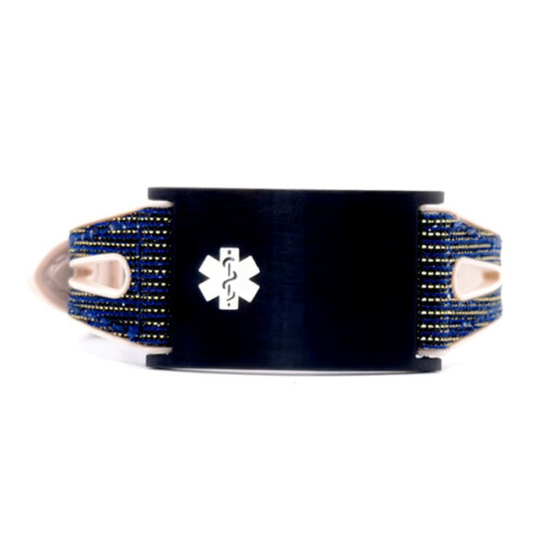 Classical Midnight Blue Glittery Autism ID Wristband Chameleon Waterdrop Slimming Bracelets -IDB25098DBLS