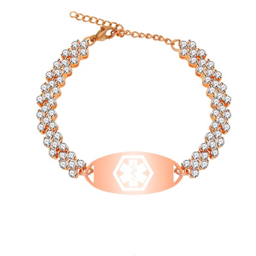• Luxury White Zircon Rose-gold ID Bracelets -IDB25127RG