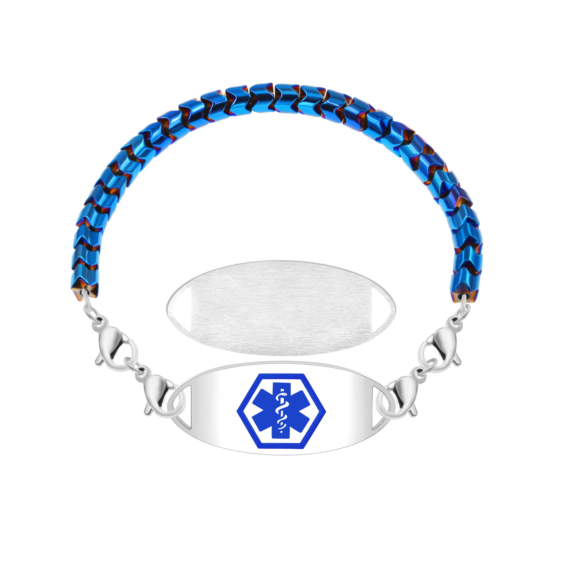 · Primary: 5mm blue Hematite Bead Diabetes Medical ID Bracelet – Adjustable