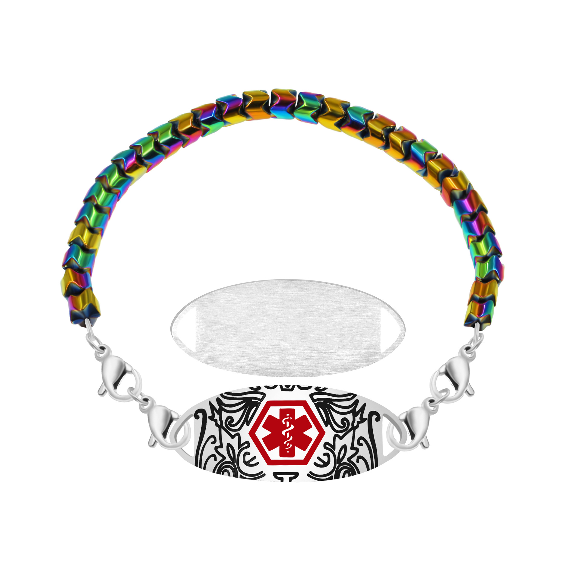 · Primary: 5mm colorful Hematite Bead Diabetes Medical ID Bracelet – Adjustable