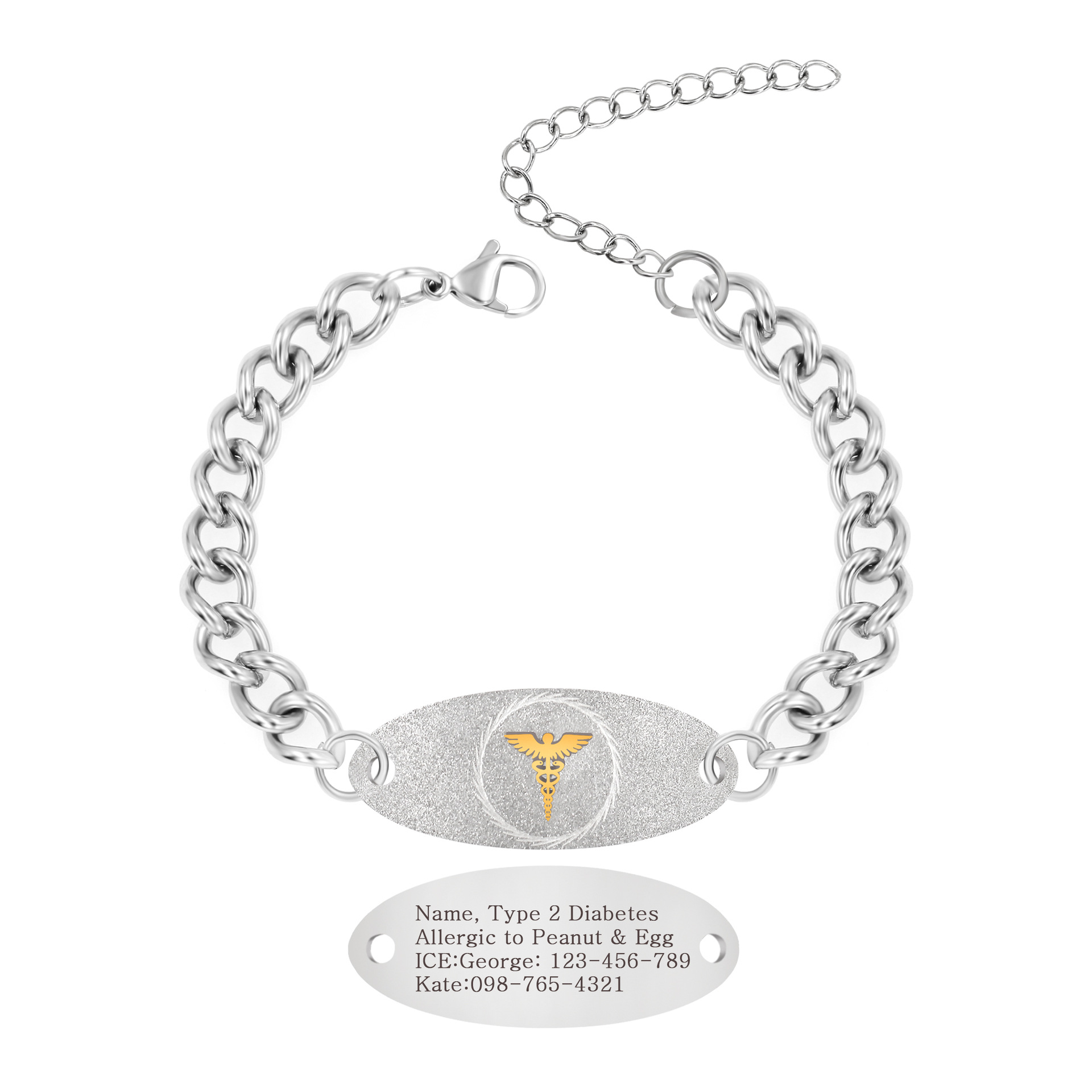 • High-Capacity Engravable Tag: The bracelet includes a large, flat tag specifically designed for deep laser engraving. This provides ample space for all crucial details, such as your name, primary medical condition(s), emergency contact number, and critical medications. The engraving is deep and filled for maximum clarity and permanence.