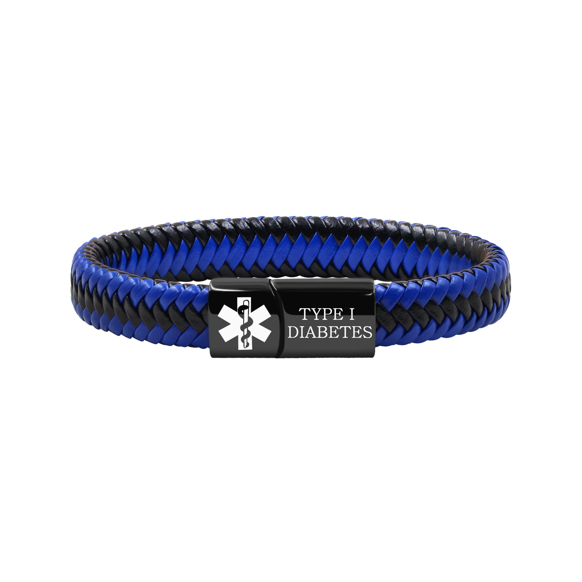 **Black and Blue Braid Leather Medical ID Bracelets – Rugged Safety with Style**