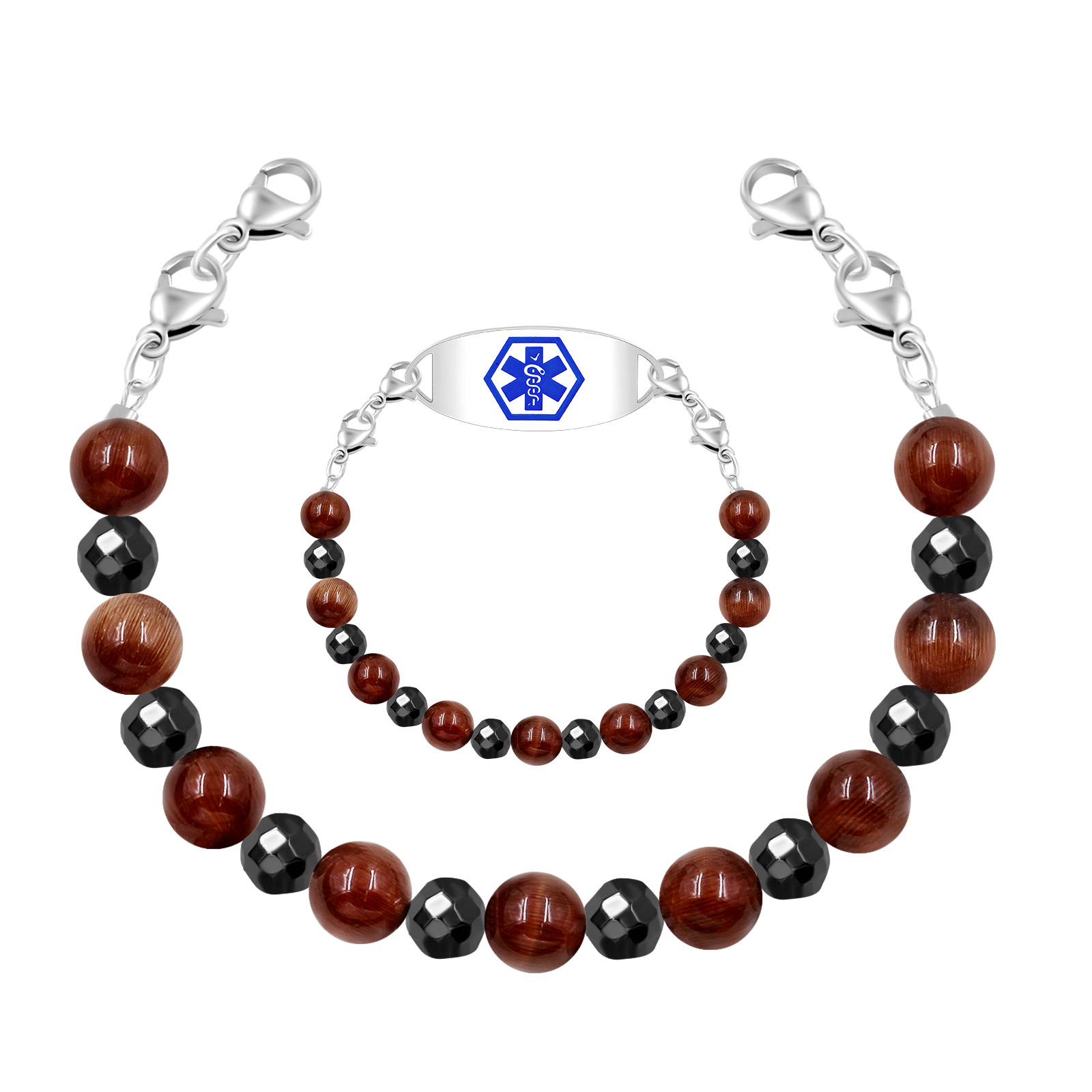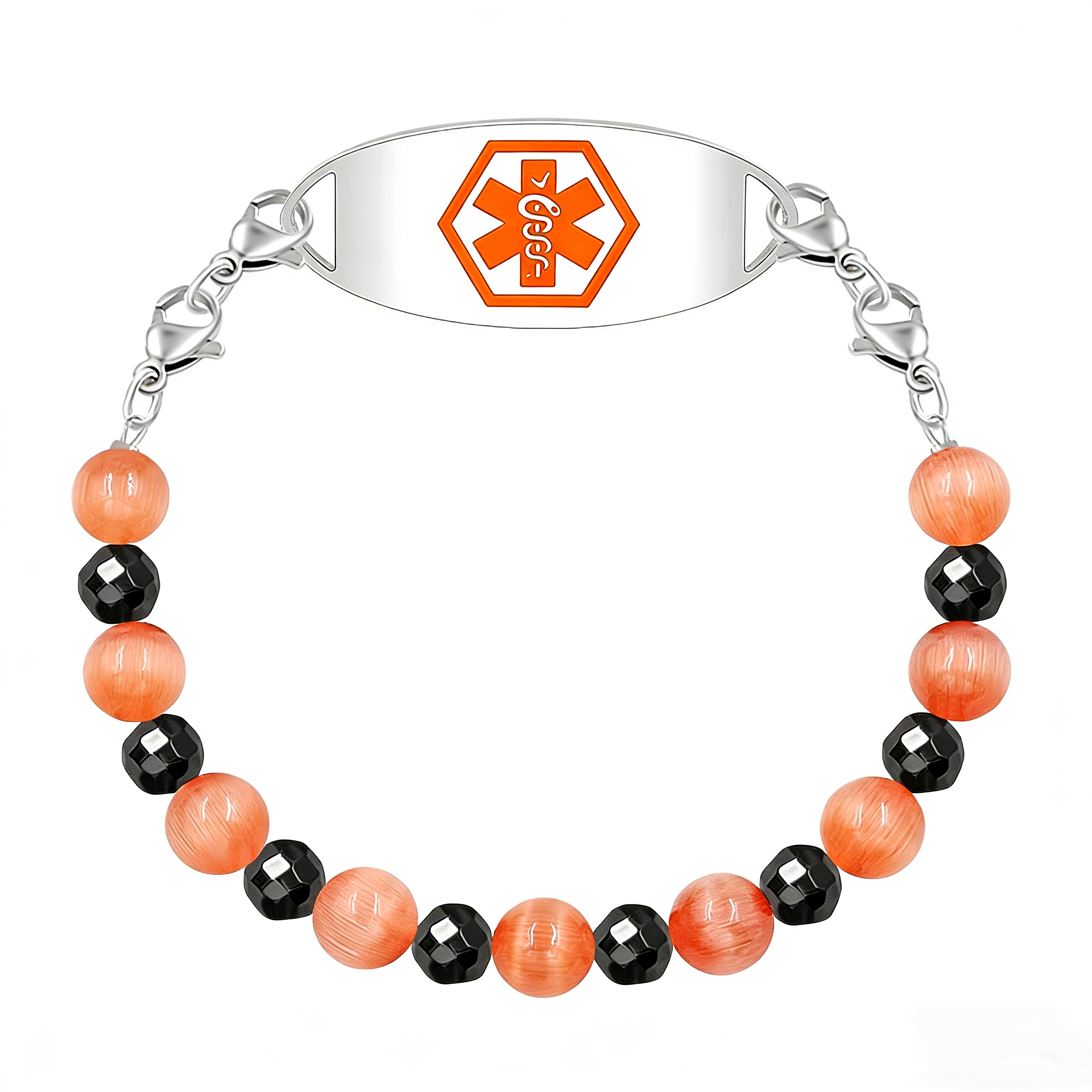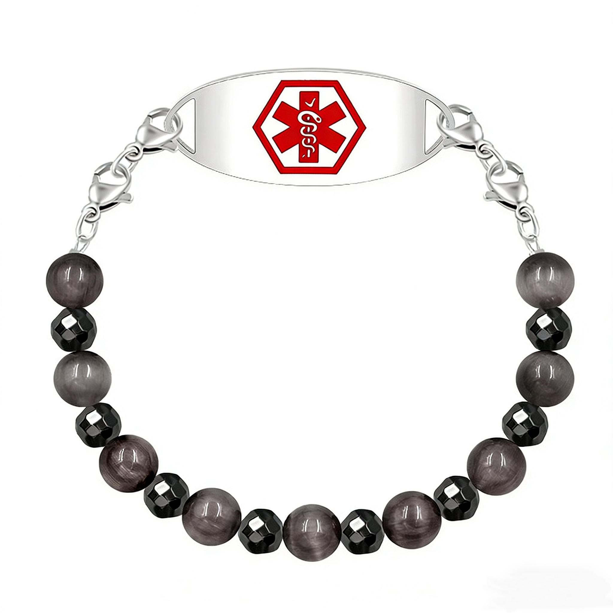 Brown Cat Eye and Black Hematite Beads Diabetes on Insulin ID Bracelets Features