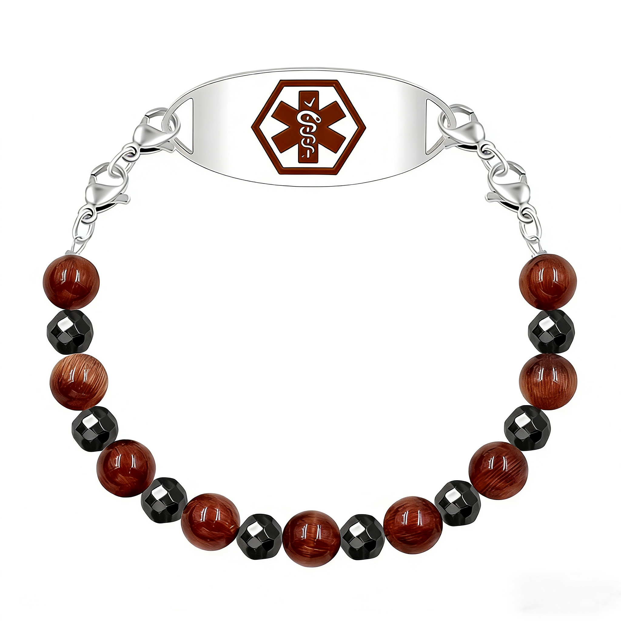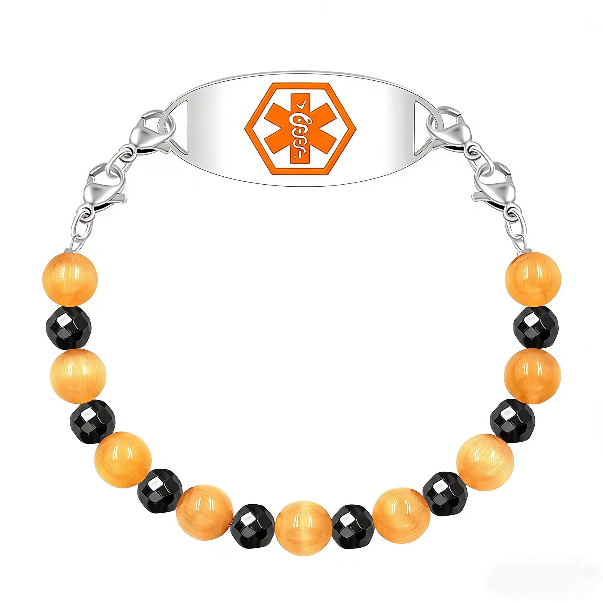 Product Description: Brown Cat Eye & Black Hematite Beads Diabetes Insulin Medical ID Bracelet