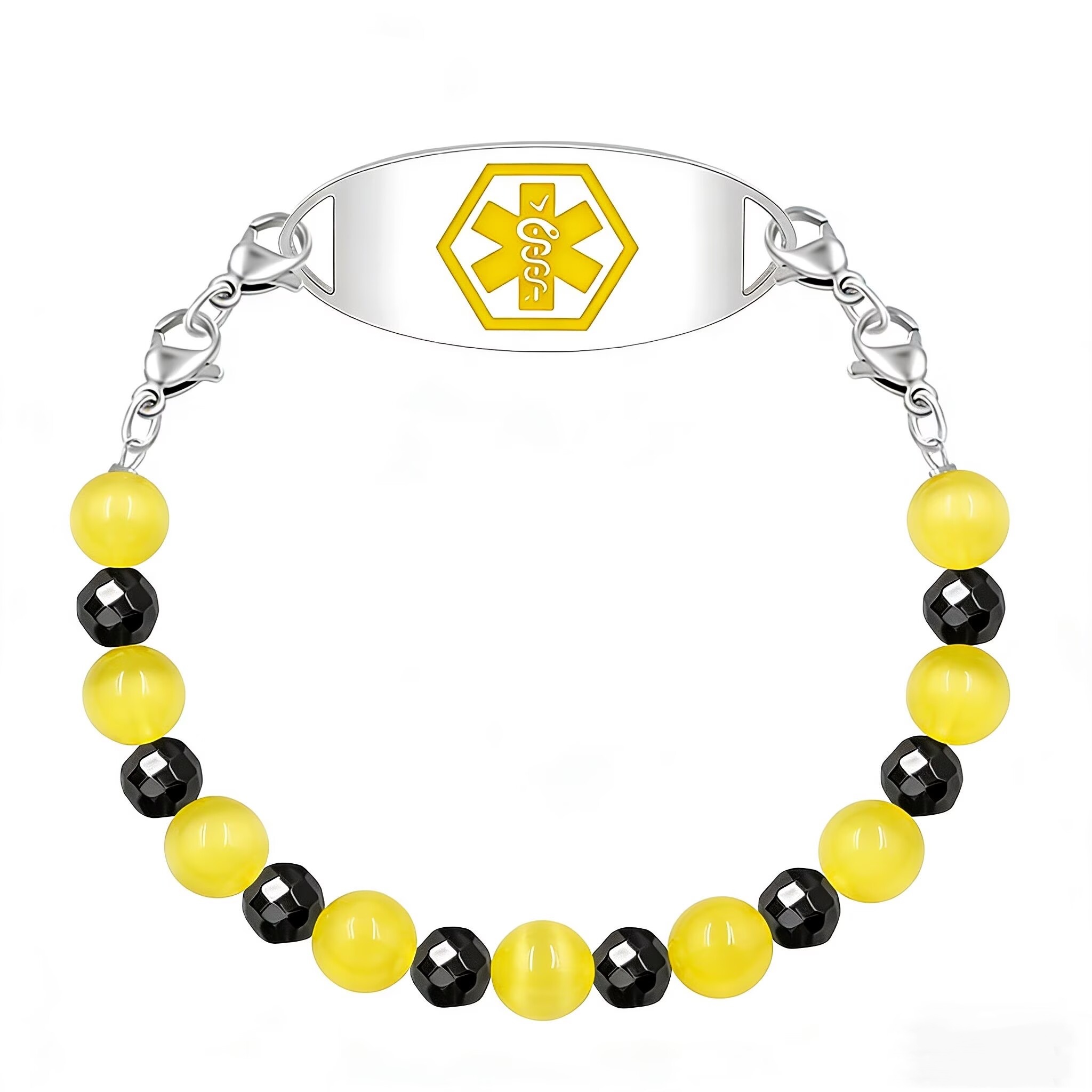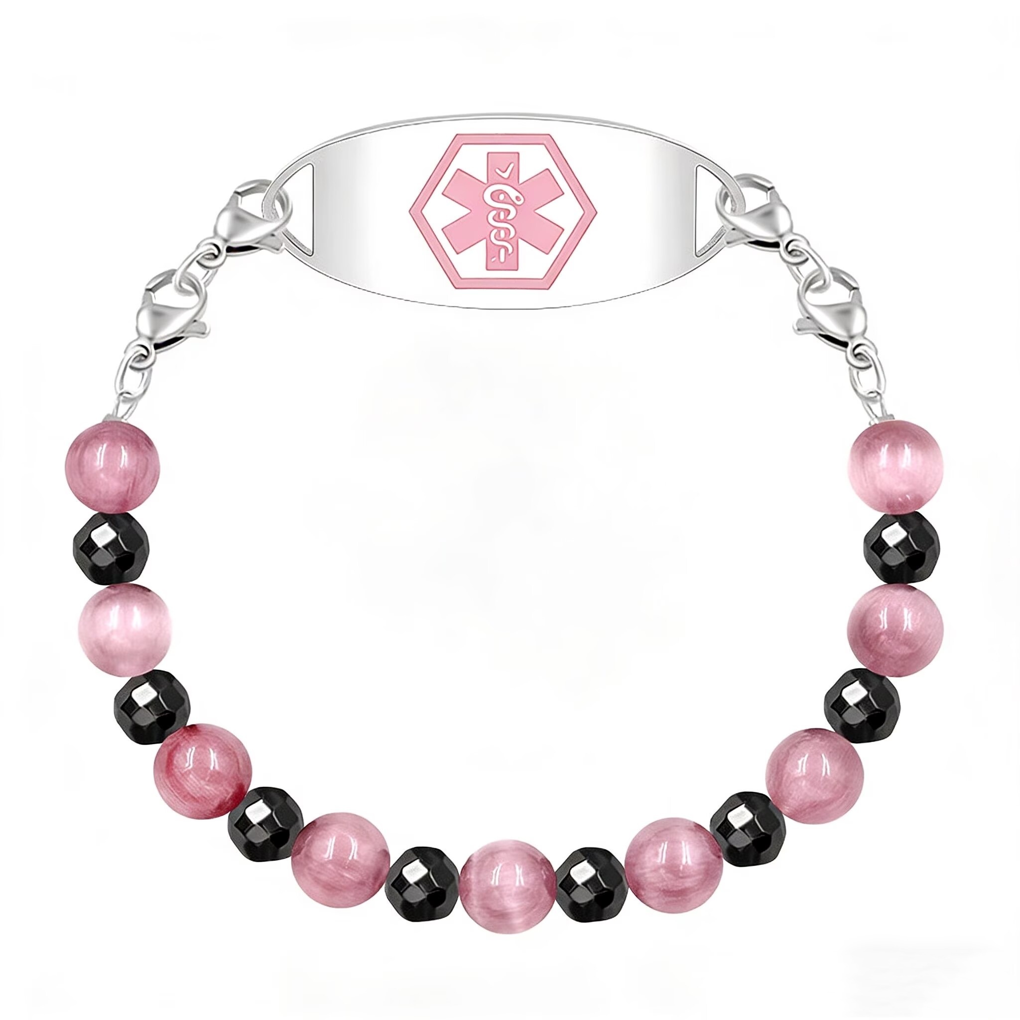 A stylish yet vital accessory designed for individuals managing diabetes—particularly those on insulin therapy. This medical ID bracelet combines the natural beauty of gemstone beads with essential safety features, ensuring both aesthetic appeal and life-saving functionality.