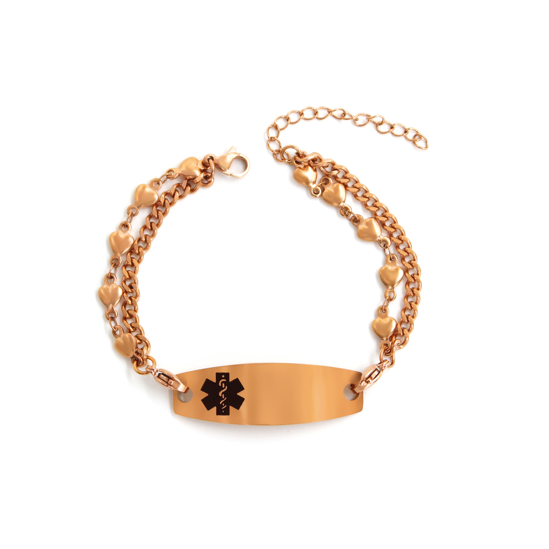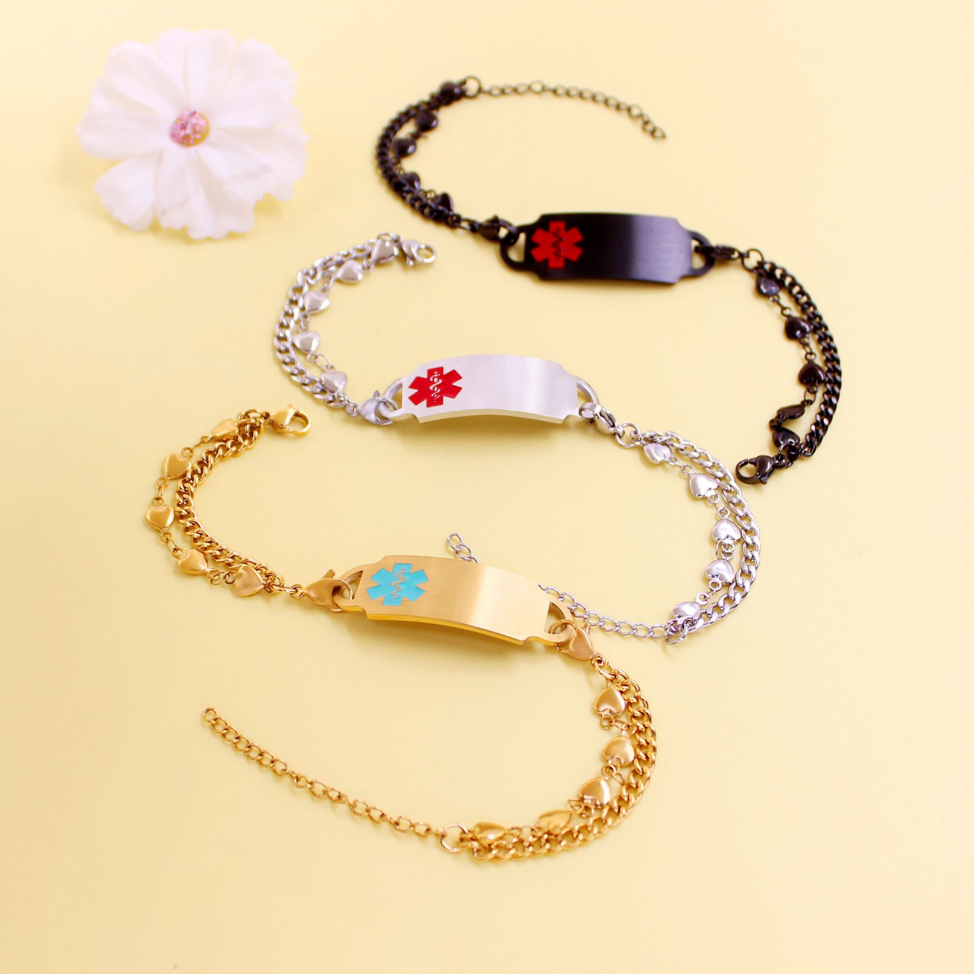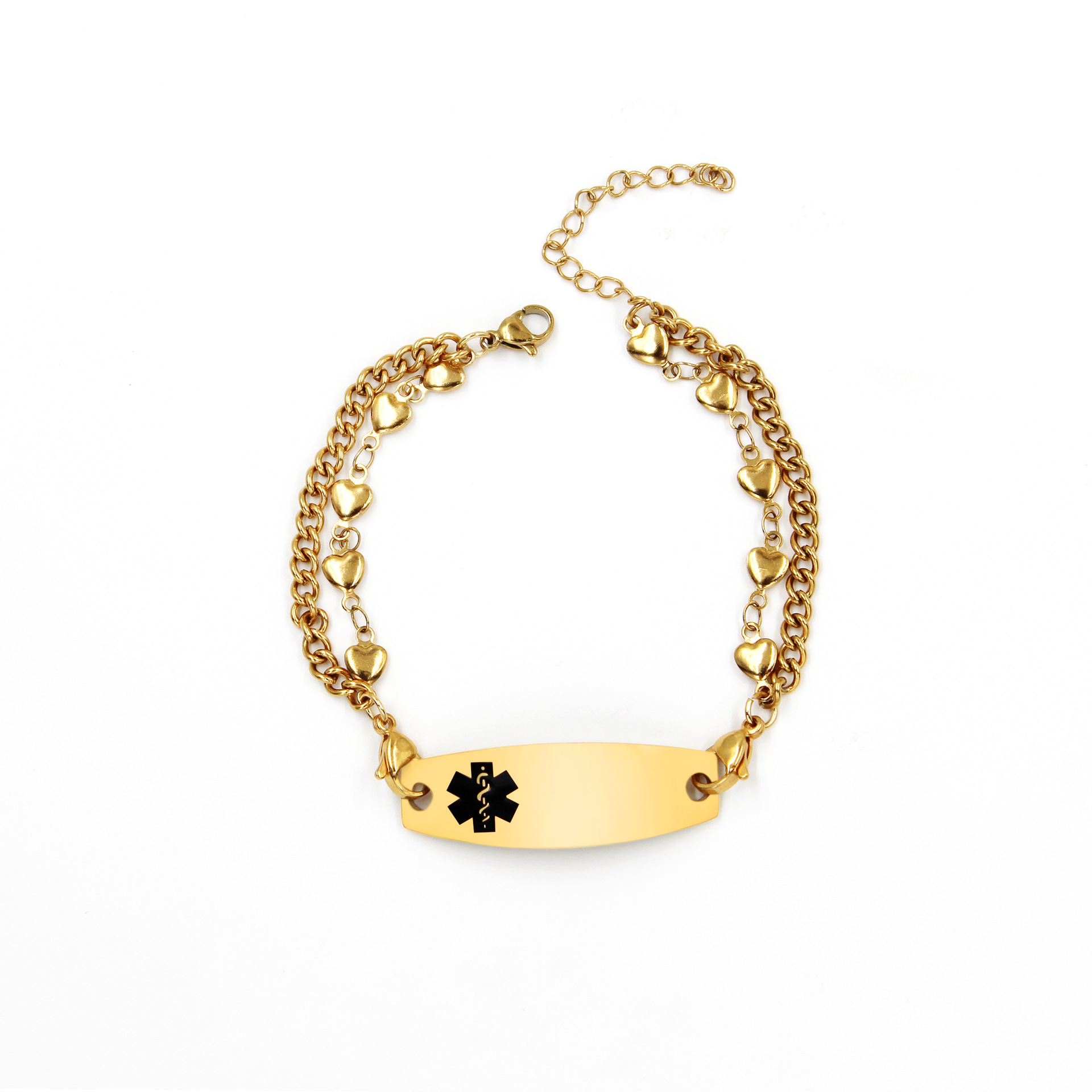Gold Interchangeable Stainless Steel Double Chains Pacemaker Alert Bracelets Features