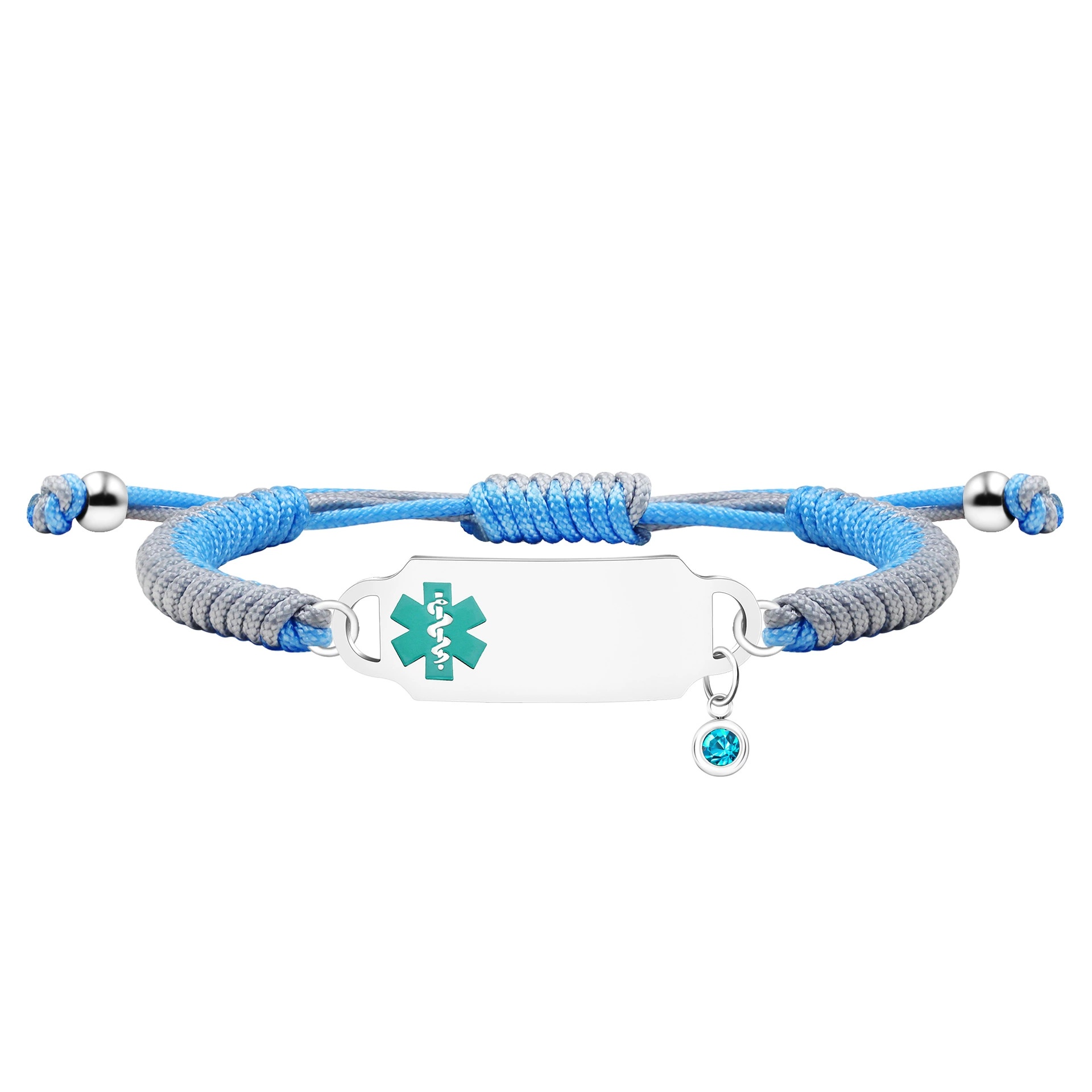 Grey and Blue Handmade Braid Medical ID Bracelets with AB Sides Features