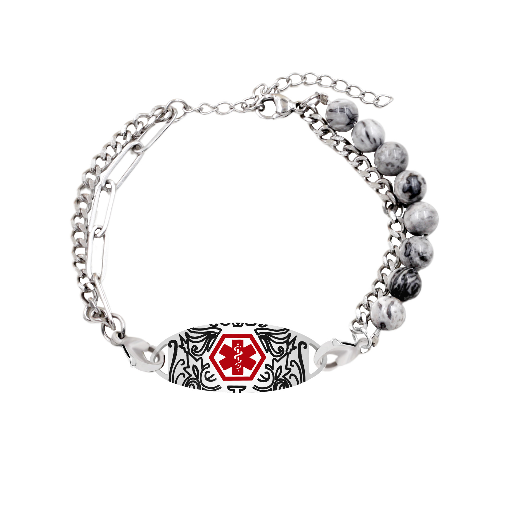 · The core of this bracelet’s design. The medical ID tag is attached via secure, easy-to-use jump rings or a specialized clasp system, allowing you to effortlessly swap the main chain.