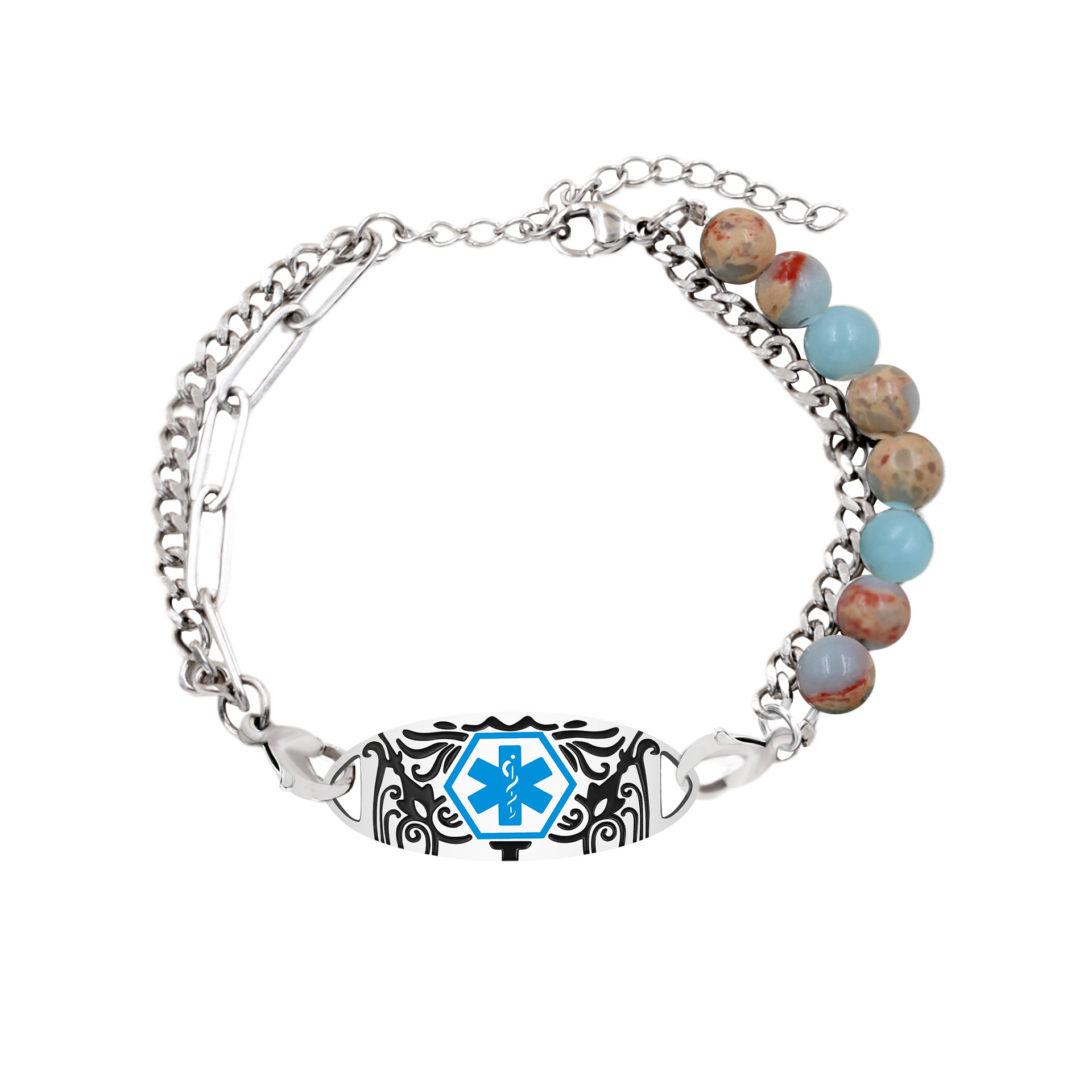 Interchangeable Chains Matte Amazonite Beads Medical ID Bracelets Features