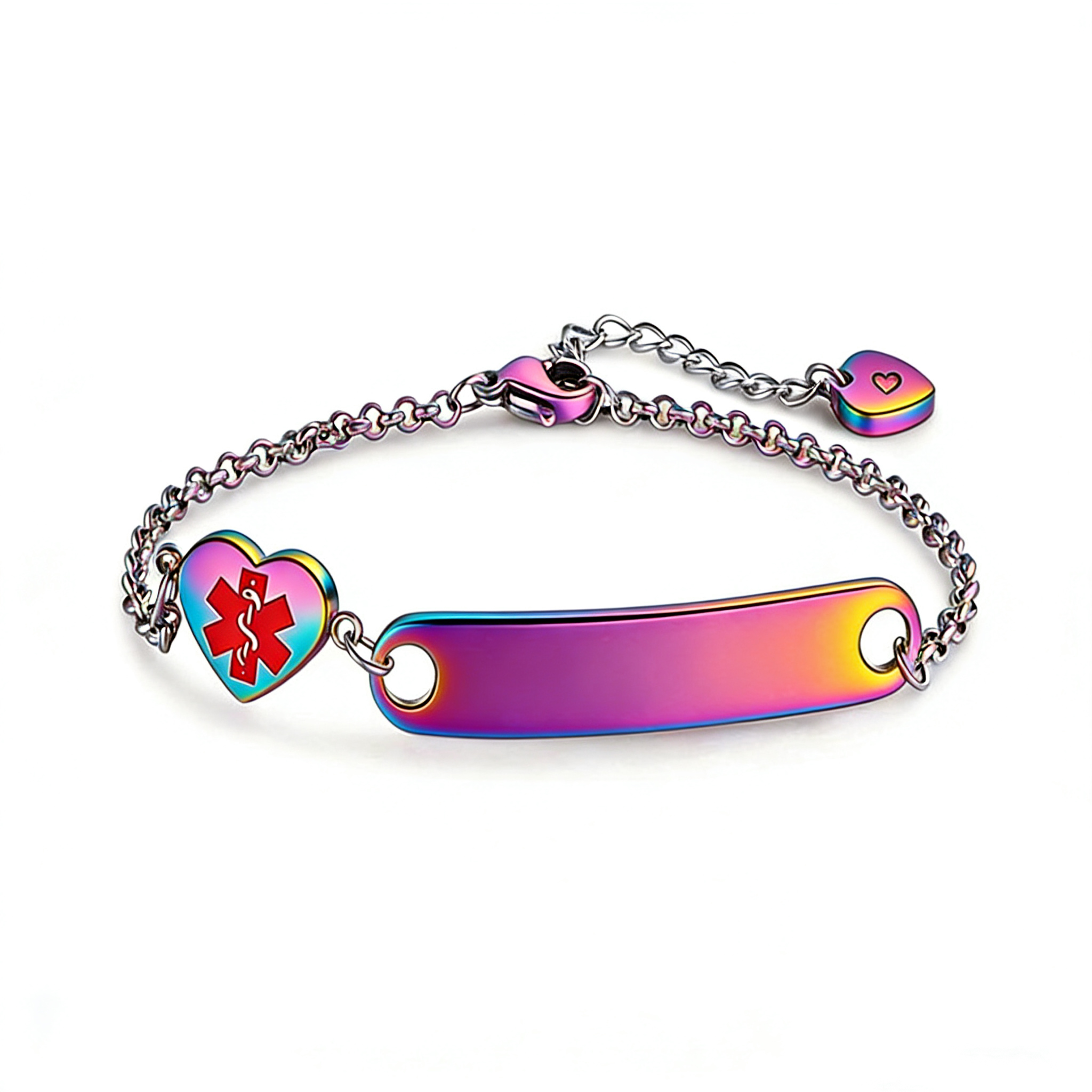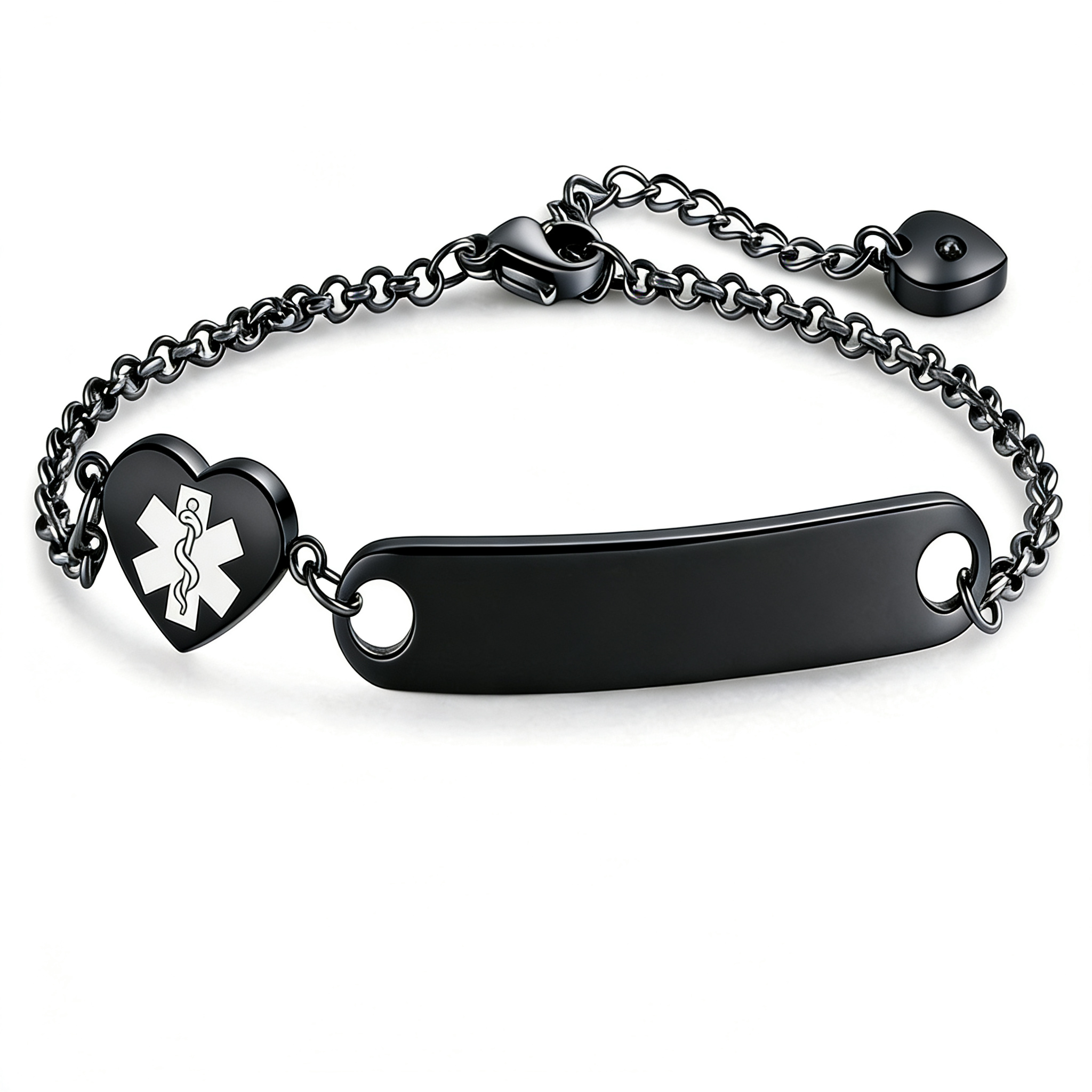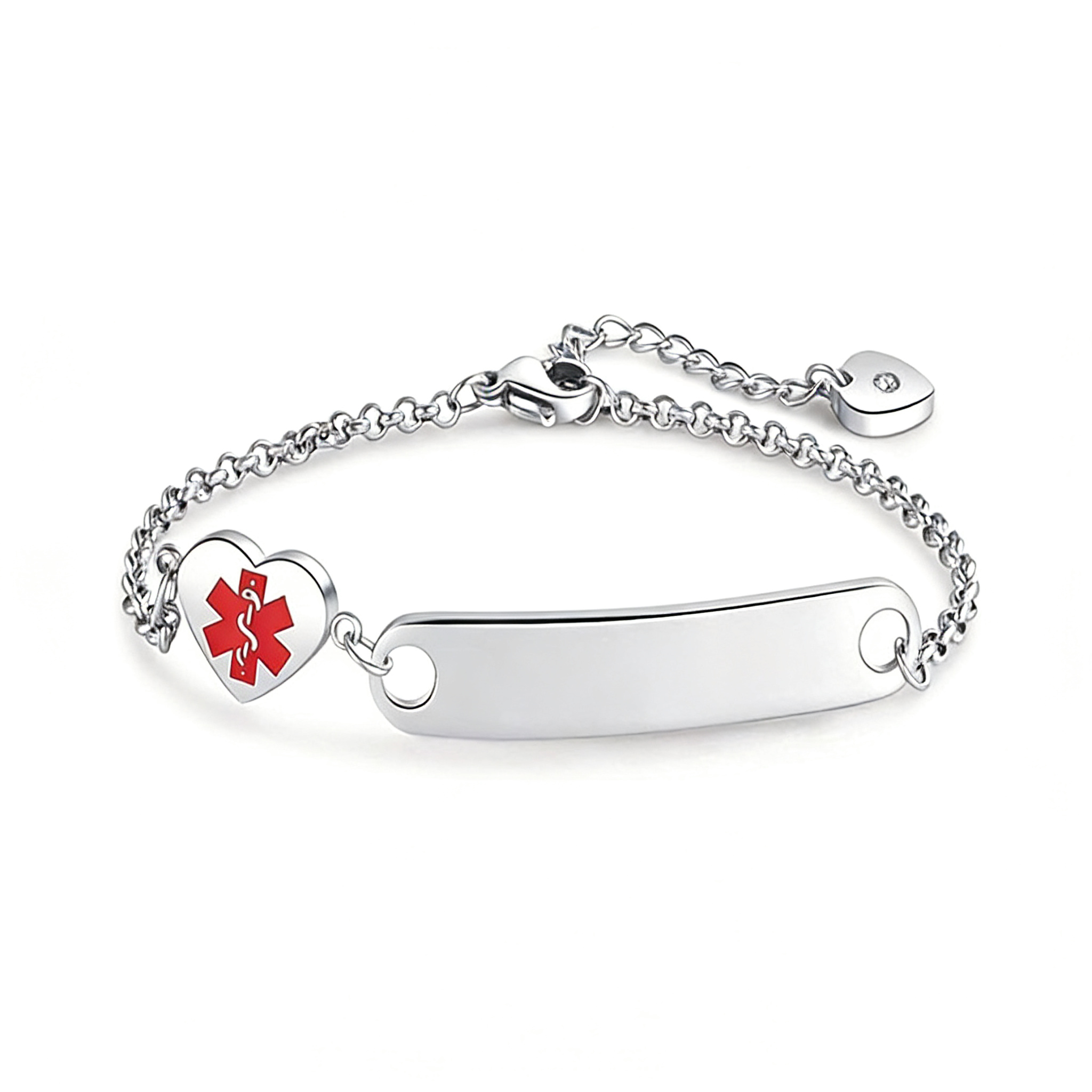 • Central Charm:​ A polished sweet heart-shaped charm acts as the medical alert tag, ready to be engraved with critical information (e.g., medical condition, allergies, emergency contact).