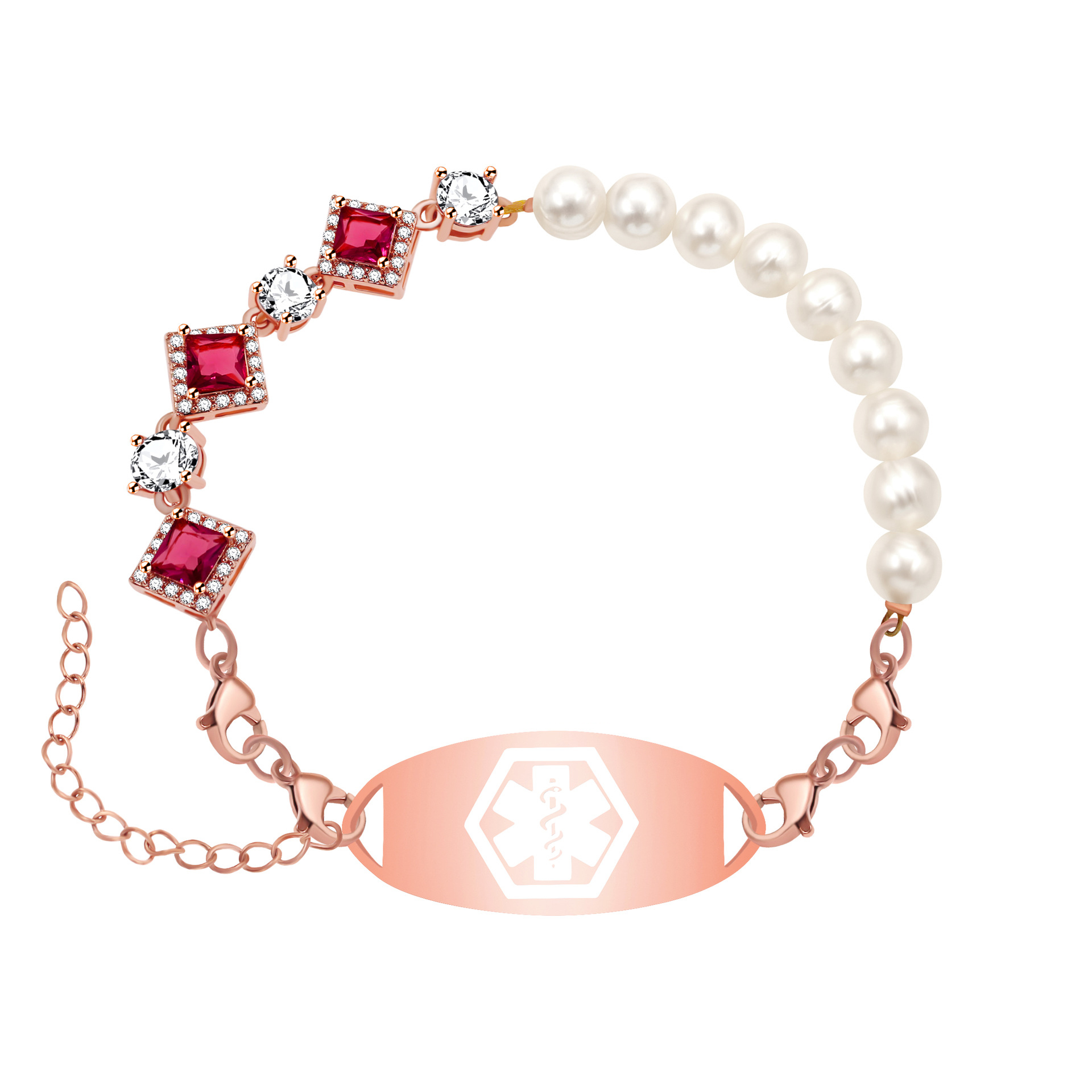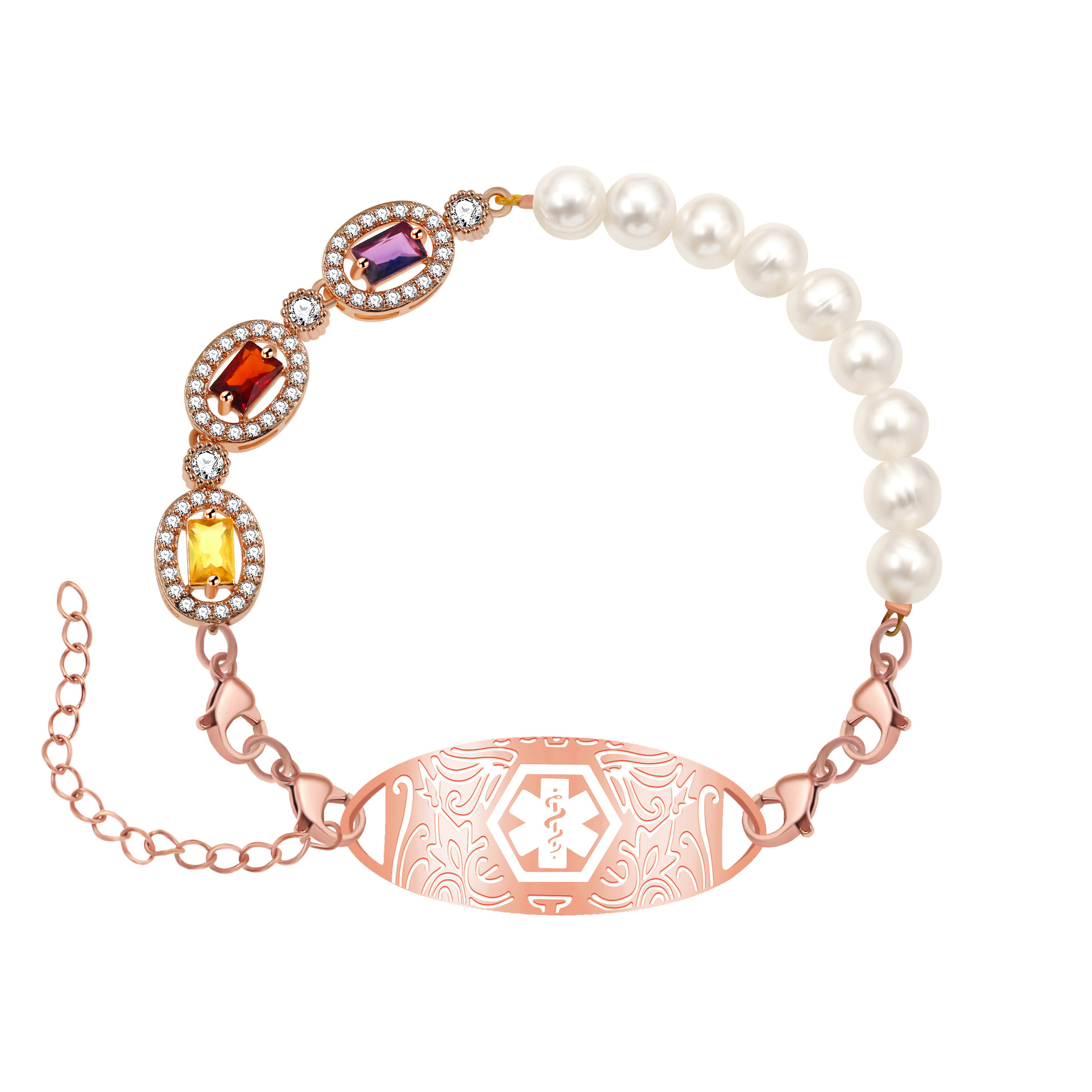 Exqusite Colorful Crystals and Natural Pearls Medical ID Bracelets for Women Features