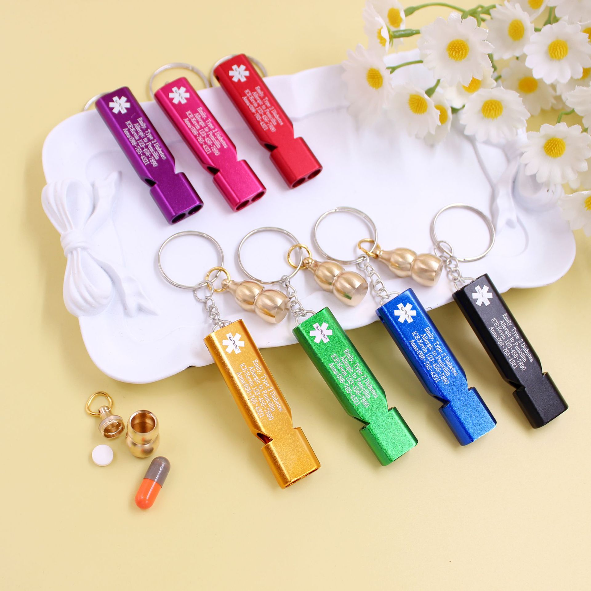 · Integrated Medical ID Compartment: The whistle itself features a hidden compartment for a rolled-up paper scroll. This is where you can clearly write crucial medical information (e.g., allergies, conditions, emergency contacts, blood type).